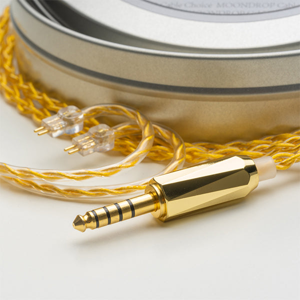 2. AutumnMoon-秋月は、水月雨ブランドが初めて発売するアップグレードケーブルです。24AWG 22 芯のケーブルは、線材に高純度 6N 単結晶銅を使用し、金メッキで仕上げました。高解像度に加え、定位感・分離感をクリアな音で再現し、お持ちのイヤホンをアップグレードさせます。適度な柔らかさも兼ね備えているので、嵩張ることなく取回しもしやすいケーブルです。