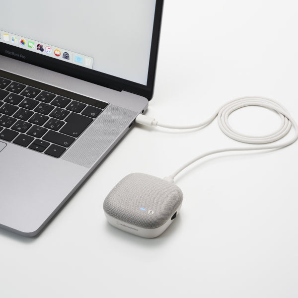 デスク周りもスッキリ、持ち運びにも便利な手のひらサイズのUSBスピーカーフォンです。