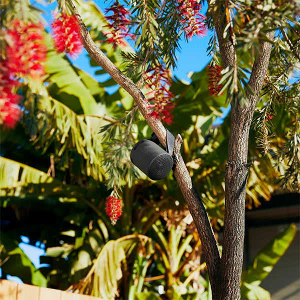 マルチウェイストラップで、スピーカーを上向きにも下向きにもかけられるので、パラソルやお風呂のラックなどに吊るしたときも音楽を自分に向けて鳴らすことができます。