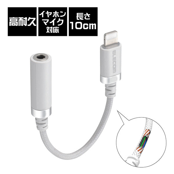 Lightningコネクタをφ3.5mmイヤホンジャックに変換できる高耐久タイプの変換ケーブルです。