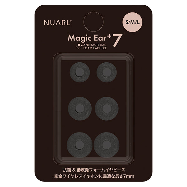 「Magic Ear+7」はフォームタイプ・イヤーピースの遮音性とシリコンタイプ・イヤーピースの利便性を兼ね備えた完全ワイヤレスイヤホンに最適な長さ7mmの低反発フォームイヤーピースです。