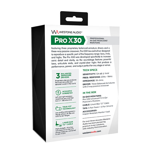 | 付属品 | □Proprietary T2 ケーブル(127cm)/ クリアー □STAR™ シリコンイヤーチップ【3サイズ】 □TRUE FIT™ フォームイヤーチップ【3サイズ】 □Mini Monitor Vault II イヤホンケース □クロスバッグ □クリーニングツール |