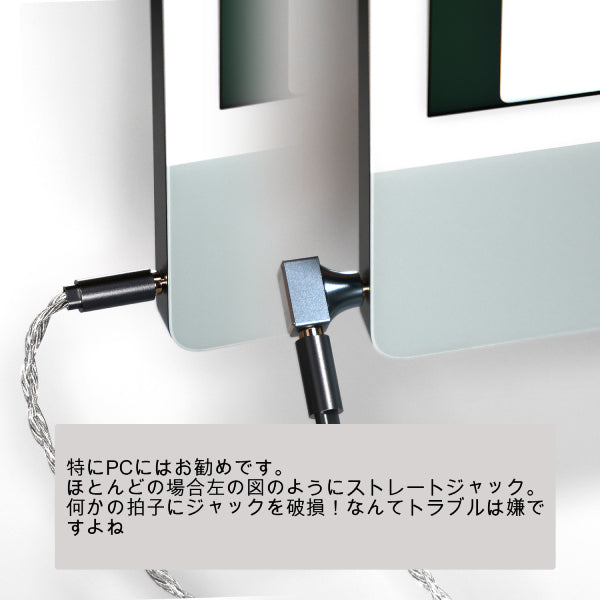 3.5mm to 3.5mmのストレートタイプのジャックをL型へと変換するアダプターです。