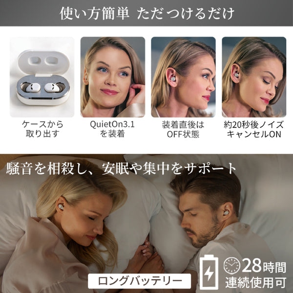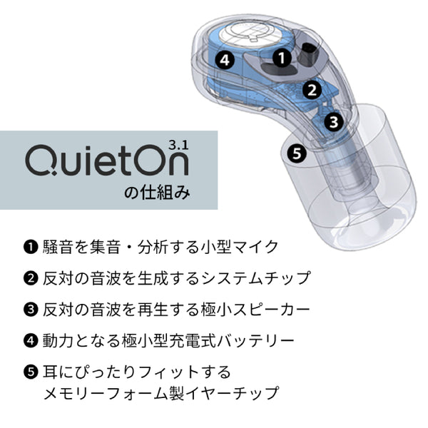 | バッテリー | QuietOn3.1本体:17mAh 専用充電ケース:200mAh |