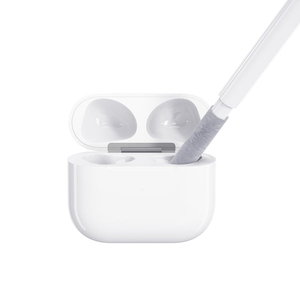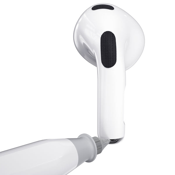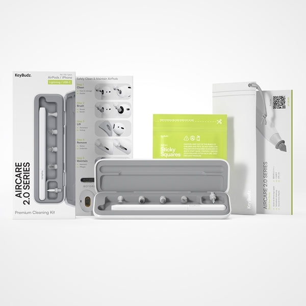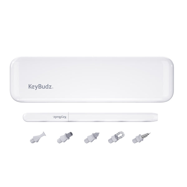 Keybudz「AirCare2.0プレミアムクリーニングキット」は、Appleクリーニングガイドに沿って設計されたAppleデバイス専用のクリーニングツールです。AirPodsを含むイヤホン類のお手入れのほか、iPhoneやiPadなど様々なデジタルデバイスにも使用可能です。用途に合わせて付け替えられるツール設計で、隅々まで汚れやほこりを徹底掃除できます。