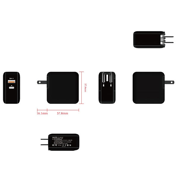 「SHO-U33 / SHO-U65」は、コンパクトサイズのUSB充電器です。USB Power Delivery 3.0対応USB Type-CポートとQuick Charge 3.0/2.0対応USB Type-Aポートを搭載し、2つのポートを使用して、スマートフォンやデバイスなどを同時に充電することができます。また、電力供給時に電圧・電流を調整し、発熱や変換ロスを抑え、無駄なく短時間で充電ができる「PPS(Programmable Power Supply)」機能にも対応。エネルギー効率の優れた化合物半導体「GaN(窒化ガリウム)」を採用することで、高出力のまま製品の小型化・軽量化を実現。