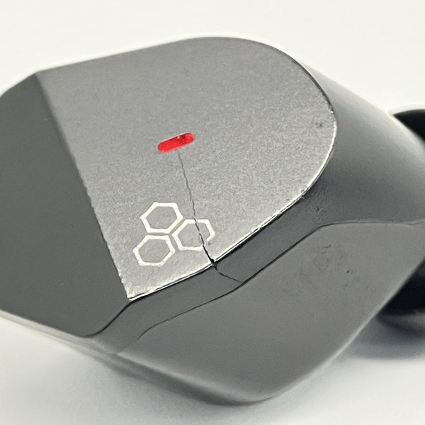 R側ハウジングひび割れあり、左右イヤホンに傷あり、充電ケースに傷/印字剥げあり