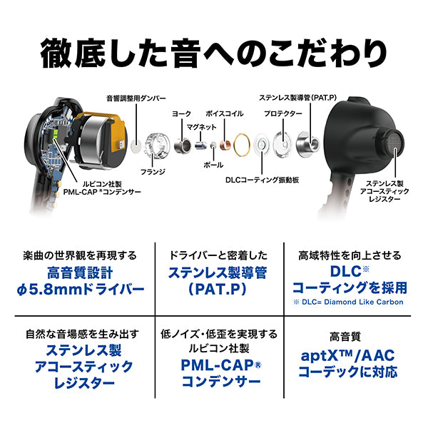 | 対応コーデック | Qualcomm aptX™ audio、AAC、SBC |