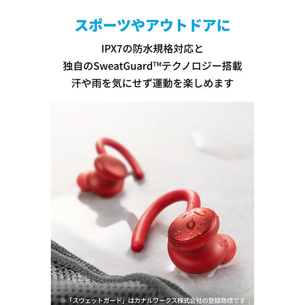| 付属品 | Soundcore Sport X10、充電ケース、イヤーチップ (XS / S / M / L / XL※開封時の商品にはMサイズが取り付けてあります) 、USB-C & USB-A ケーブル、クイックスタートガイド、安全マニュアル、18ヶ月保証 + 6ヶ月 (Anker会員登録後) 、カスタマーサポート |