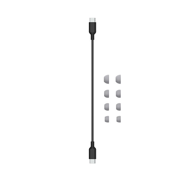 USB-C - USB-C充電ケーブル 3種類のサイズから選べるイヤーチップ(ミディアムをあらかじめ装着済み) クイックスタートガイド |