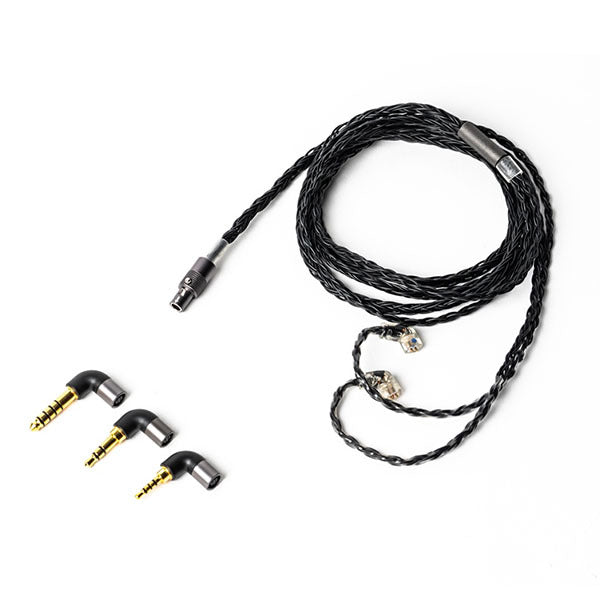 付属ケーブルは、取り回しが良いシックなブラックカラーの被膜を施した、導体に純銀と純銅使用のプレミアムケーブルを採用し、プラグ部にはアンバランス接続とバランス接続が容易に切り替え可能な3in1マルチプラグ(L字タイプ)を搭載しています。