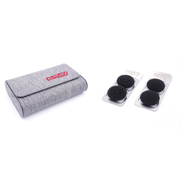 従来の全面を覆うイヤーパッドの他に、KC08シリーズではおなじみのOSTRYオリジナルイヤーパッドが付属しております。こちらには高域の減衰が少なく籠りにくい加工が施されており、細かい音の調整も可能となっております。イヤホンケースは、ファブリック生地で手触りが良く、開口時の間口が大きくイヤホンを出し入れしやすいケースを採用しました。
