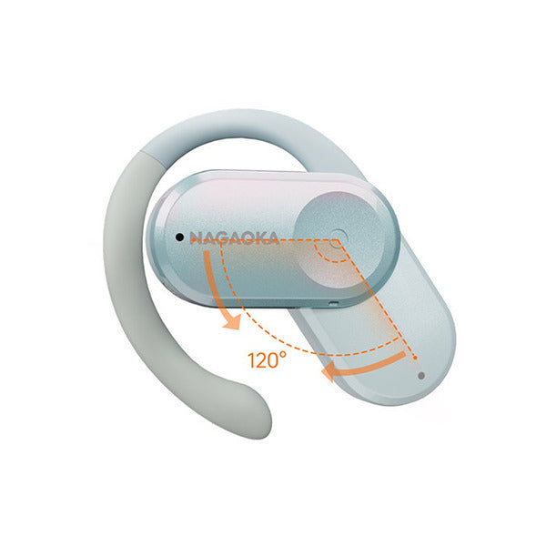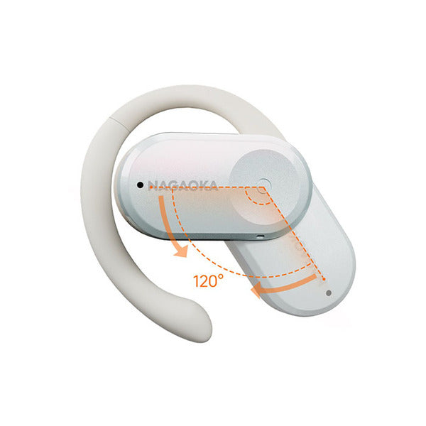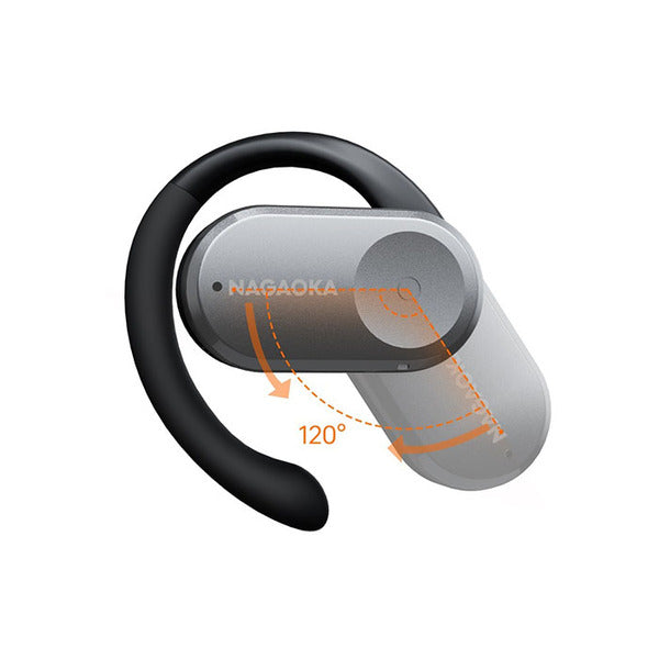 120°の角度調整を可能とした可動式イヤーフックを搭載し、どなたの耳でもフィットしやすいオープンイヤー型完全ワイヤレスイヤホンです。