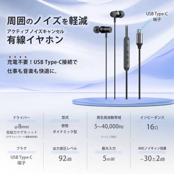 本製品は、ハイレゾ対応イヤホンとして高評価を得ていた HSE-A2000 の後継機として誕生しました。引き続きグラフェンコート振動板を採用し、高音質を実現。ご要望の多かったUSB Type-C 接続のイヤホンとなり、リモコンマイクおよび周囲のノイズを軽減するアクティブノイズキャンセリング機能を搭載。加えて、ボディはアルミ削り出しのガンメタリックで、上質で洗練された仕上がりです。スマートフォンや PC に接続し、音楽や動画視聴を楽しみたい方や、通話などで利用されたい方に、求めやすい価格帯で高音質な環境を提供する有線イヤホンです。