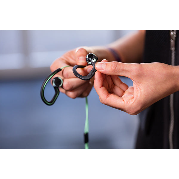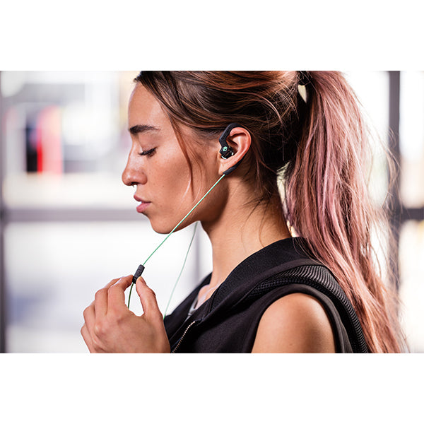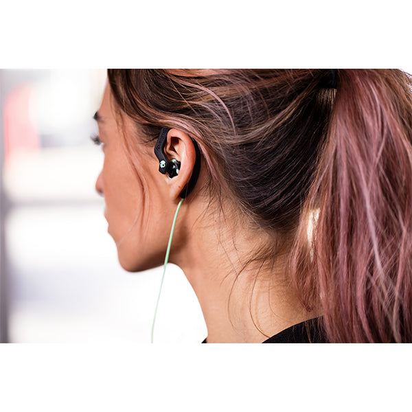 フレキシブルなイヤフックがスポーツの動きにも対応し、快適な装着感を提供。