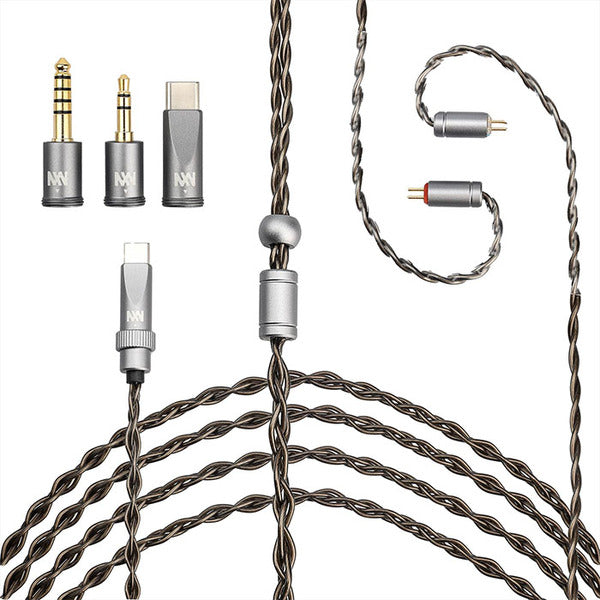 | ケーブル仕様 | ・コネクタ:0.78mm 2pin ・プラグ:交換式 4.4mm バランスプラグ、3.5mmアンバランスプラグ、USB-C プラグ ・線材:4芯の高純度銀メッキOCC線 ・ケーブル長:1.2m |