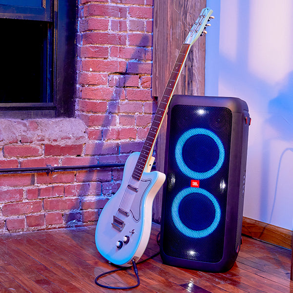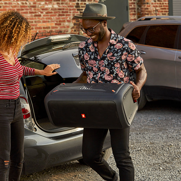 「JBL PARTYBOX 300」は、プロ用で鍛えたJBLサウンドと華やかなライトショー機能を兼ね備えた、音楽を本格的に楽しむことのできるワイヤレススピーカーです。ダブルウーファーと3ツィーターを搭載し、大迫力の重低音からきらびやかな高音域まで、クリアに再生できる音質を実現しました。大容量バッテリーを搭載しているため、パーティーやライブ、講演会など、場所を選ばすいつでもあらゆるシーンでお使いいただけます。