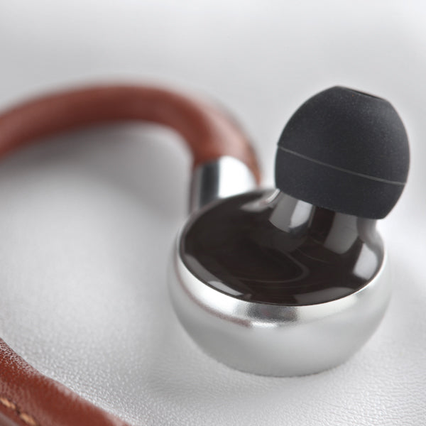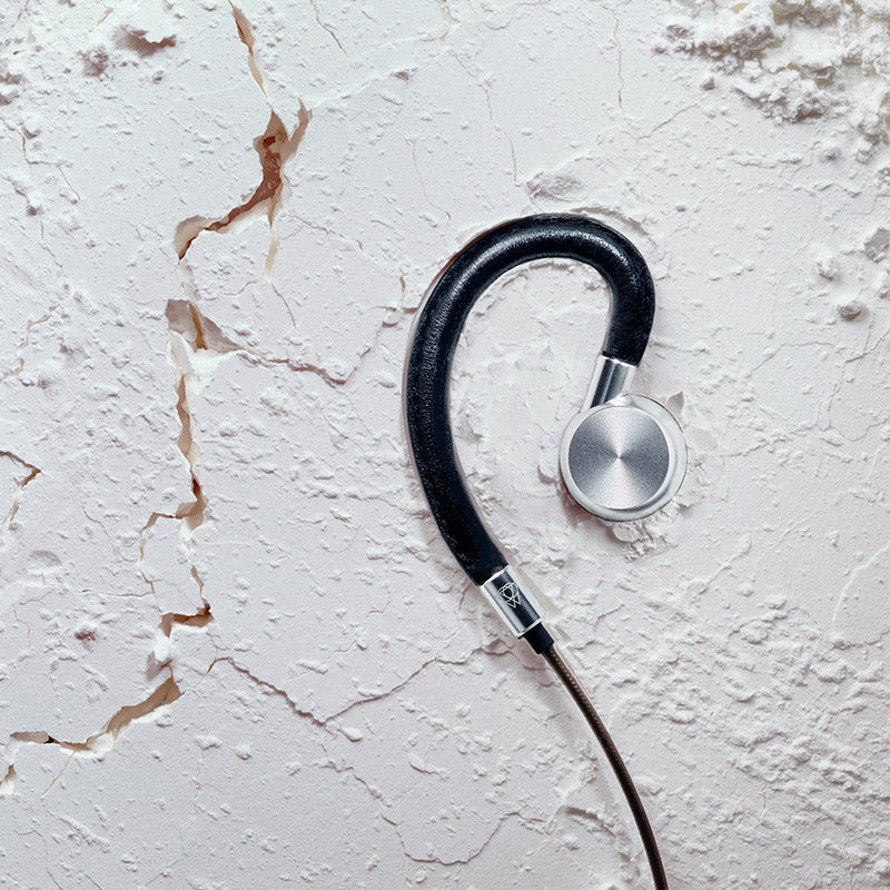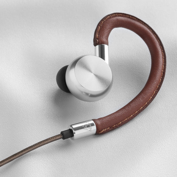 職人の手縫いによるカーフスキンをイヤーフックに配したエレガントなインイヤーイヤフォン。