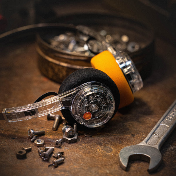 実際につけてみると見た目通りの軽さです。流石68gですね。イヤーパッドが思っていたより厚みがあってフィット感良好です。ヘッドバンドはスライダーで無段階で調節できます。質感も画像通りで、レトロなフォルムでトランスペアレント最高…。