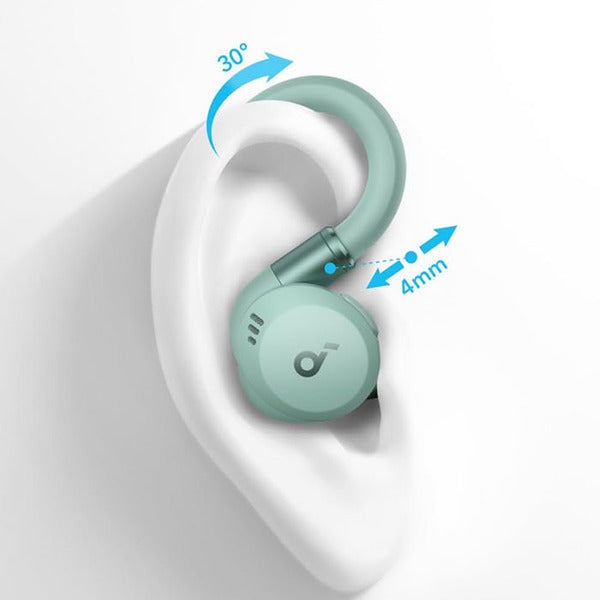 柔らかい質感のイヤーフックにより、激しい運動中も外れにくく、快適で軽い付け心地を実現。耳に合わせ、イヤーフックの角度や伸縮の調整が可能です。
