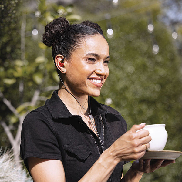 人間工学に基づいた薄型デザインは、ミュージシャンがステージ上のインイヤーモニターとして使用するのと同じ薄型デザインを採用しています。イヤホンを所定の位置に固定することで、ケーブルが邪魔にならず、激しい動き を伴う時もイヤホンが外れず、長時間使用しても快適な装着感が持続します。